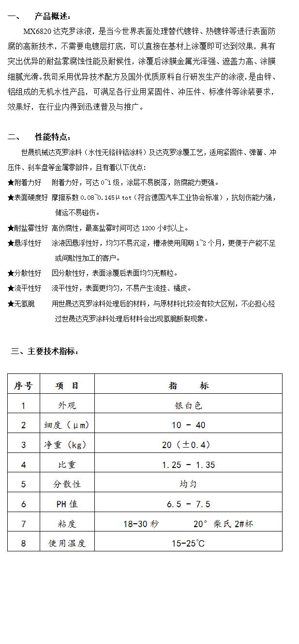 產(chǎn)品名稱:MX6820達克羅涂液
